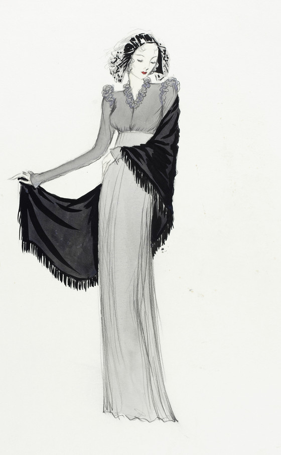 Costume Sketch of Ginger Rogers as Dolly Madison in the Universal Pictures Production of 'The Magnificent Doll'