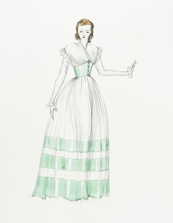 Costume Sketch of Ginger Rogers as Dolly Madison in the Universal Pictures Production of 'The Magnificent Doll'