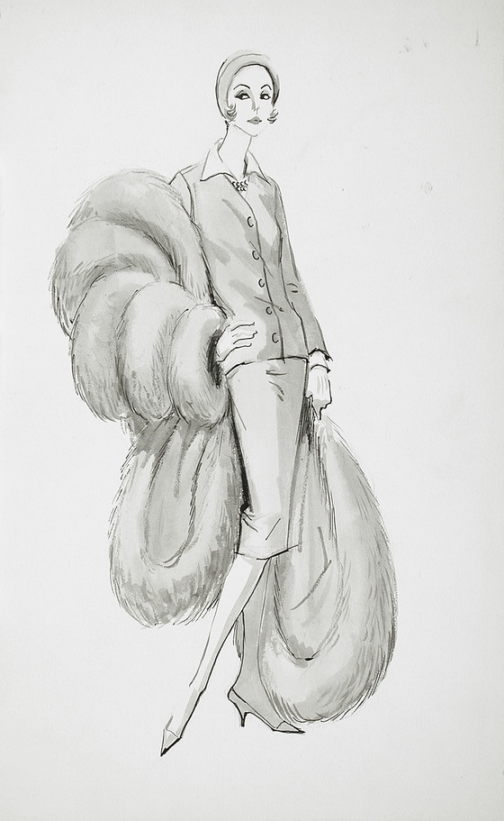 Costume Sketch of Rosalind Russell as Mame Dennis in the Warner Brothers Production of 'Auntie Mame'