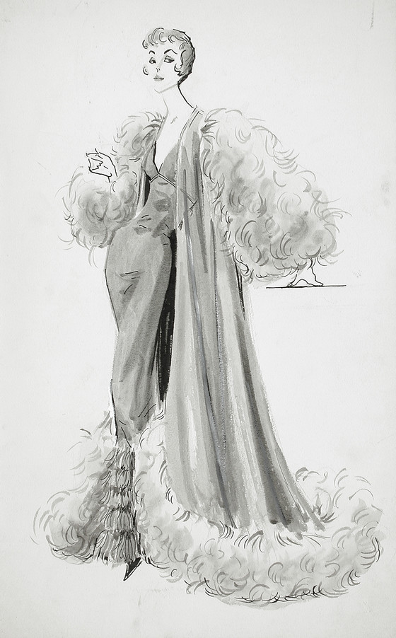 Costume Sketch of Rosalind Russell as Mame Dennis in the Warner Brothers Production of 'Auntie Mame'
