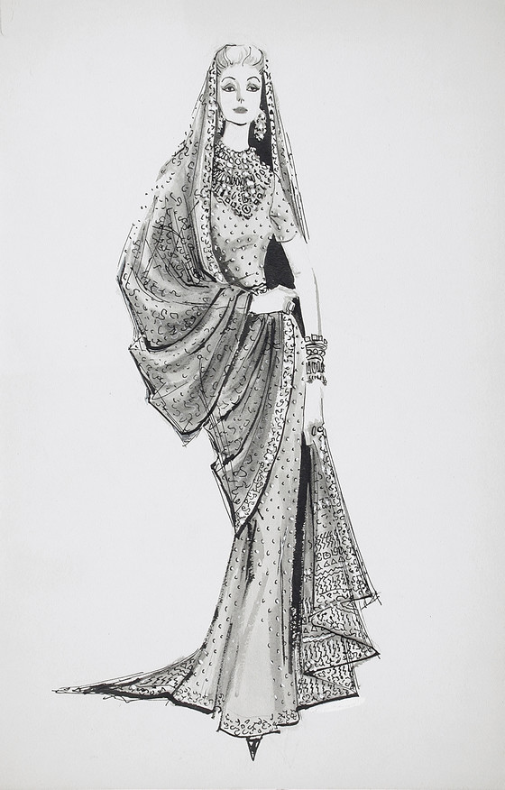 Costume Sketch of Rosalind Russell as Mame Dennis in the Warner Brothers Production of 'Auntie Mame'
