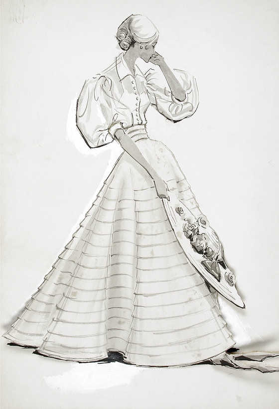 Costume Sketch of Rosalind Russell as Mame Dennis in the Warner Brothers Production of 'Auntie Mame'