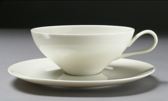 a) Teacup: 2 x 5 1/2 x 4 1/2 in. (5.08 x 13.97 x 11.43 cm); b) Saucer diameter: 6 3/8 in. (16.19 cm)
