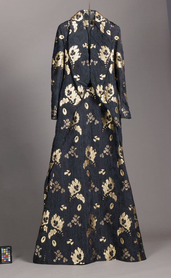 Jacket and Skirt: Silk and metallic-thread double weave (matelassé)