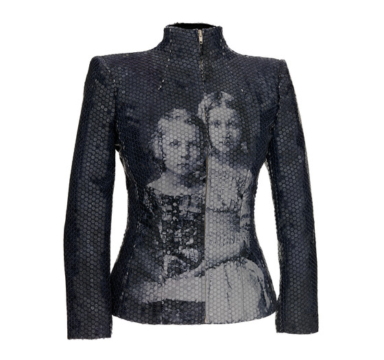 Polyester/acetate plain weave (crepe) and plastic sequins, printed