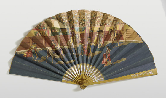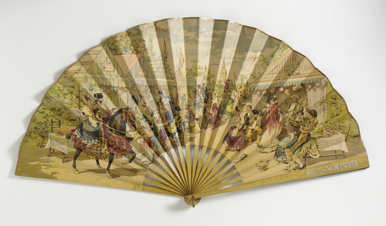 Paper leaf, wooden guards and sticks, brass metallic loop and button, silver metallic rivet