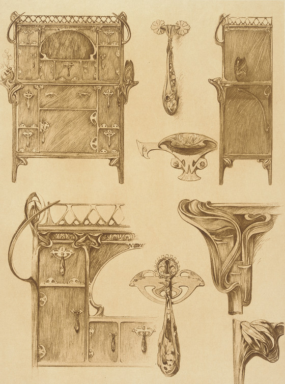 Portfolio: Documents décoratifs par A.M. Mucha. Panneaux décoratifs, études et applications des fleurs, papiers peints, frises, vitraux, orfevrerie, etc.