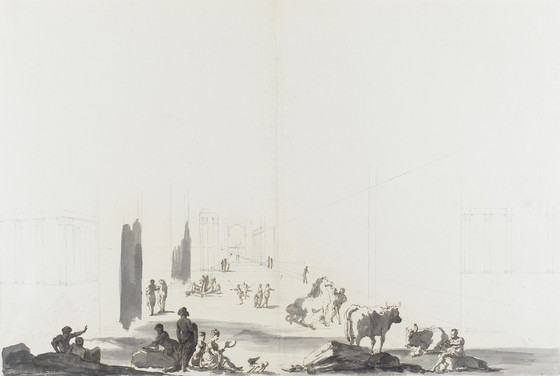 Figures and Animals in Deep Architectural Setting
