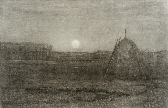 Moonlight Scene with Haystack