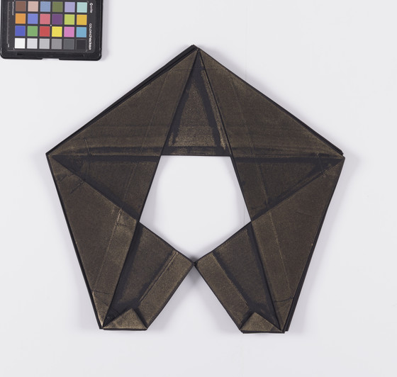 Polyester plain weave with heat- and pressure-set folds, heat-transfer printed