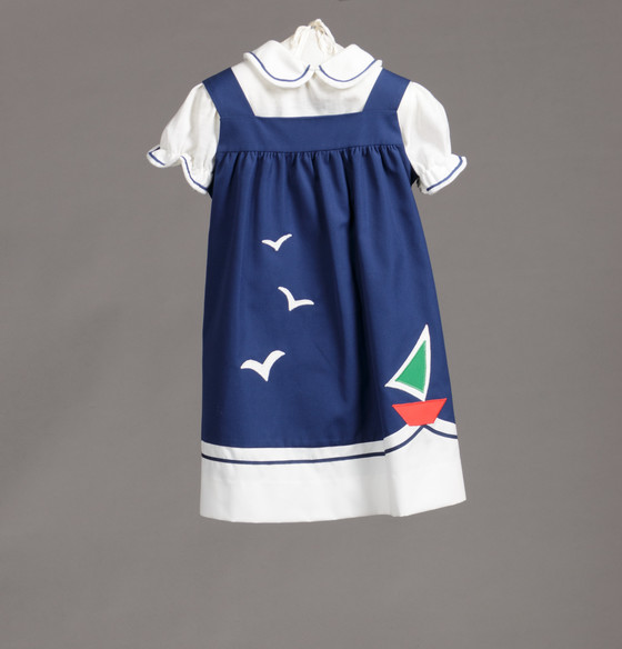 Dress: cotton plain weave with wool plain weave appliqués; Blouse: acrylic knit