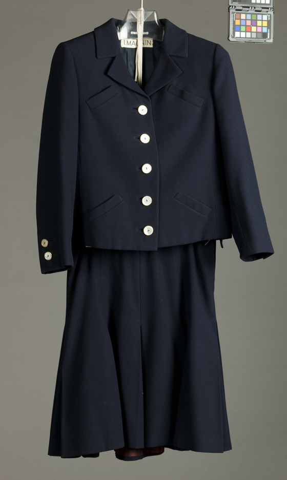 Jacket: Wool plain weave (crepe), metal and plastic buttons