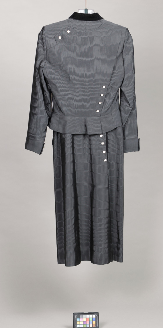 Skirt: Silk/wool faille (moiré), crystal buttons