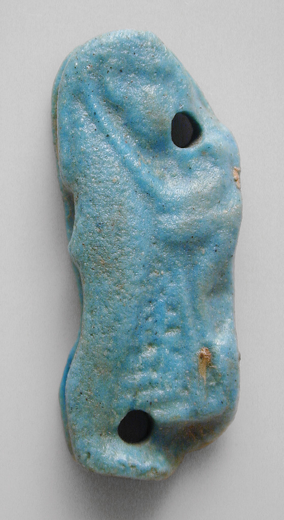 Faience, blue glaze, worked in bas-relief