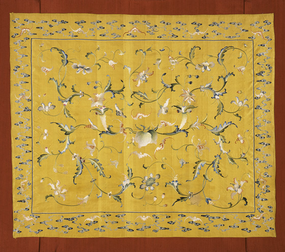 Cushion Cover (Kaoshi) with Flowers and Bats