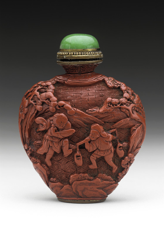 Snuff Bottle (Biyanhu) with Scholars in Landscape