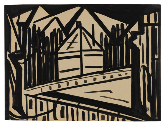 Drawing in graphite and black ink on card