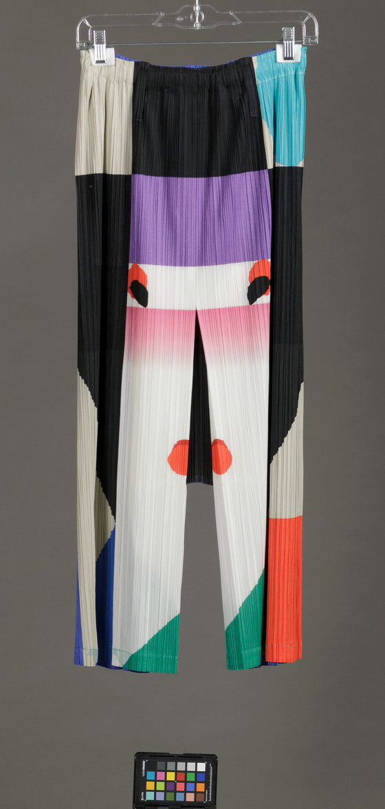 Top: polyester knit, heat- and pressure-set pleats; 'Nihon Buyo' Pants: polyester knit, printed, heat- and pressure-set pleats