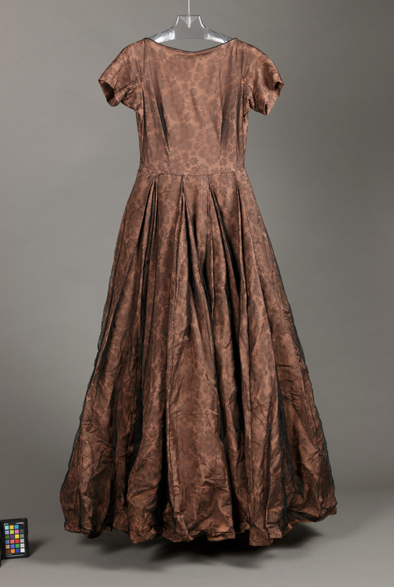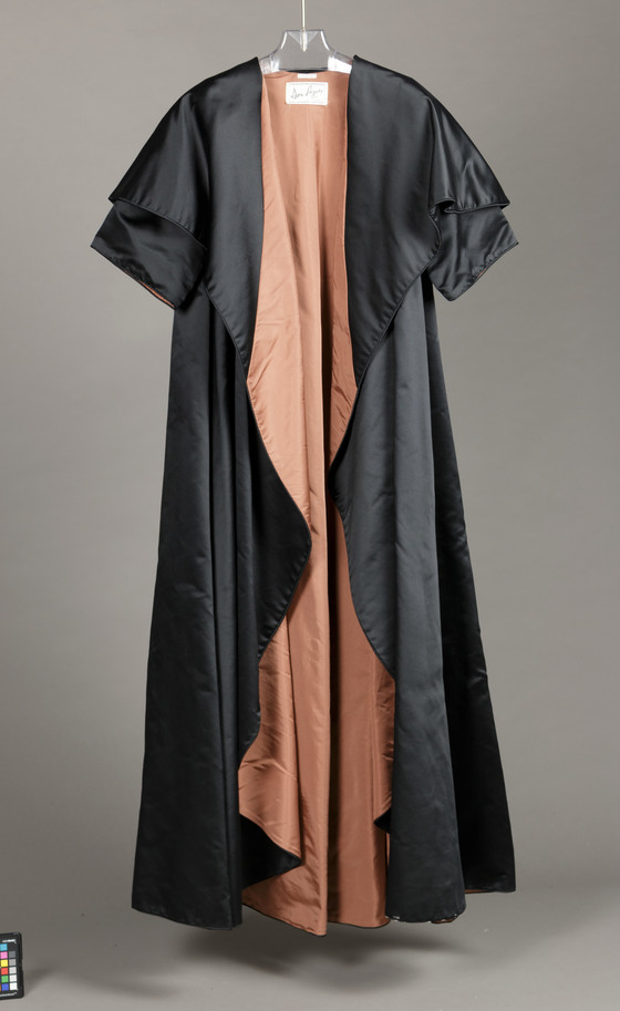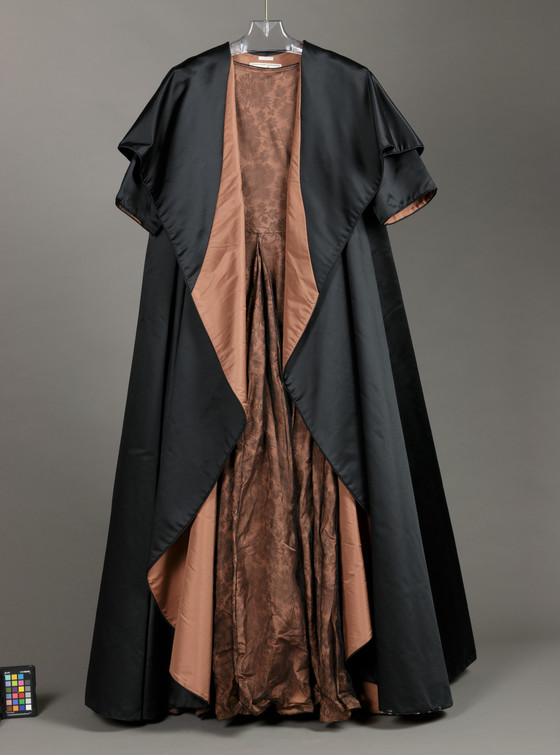 Coat: Silk satin, silk plain weave (taffeta); Dress: nylon lace and silk plain weave (taffeta)