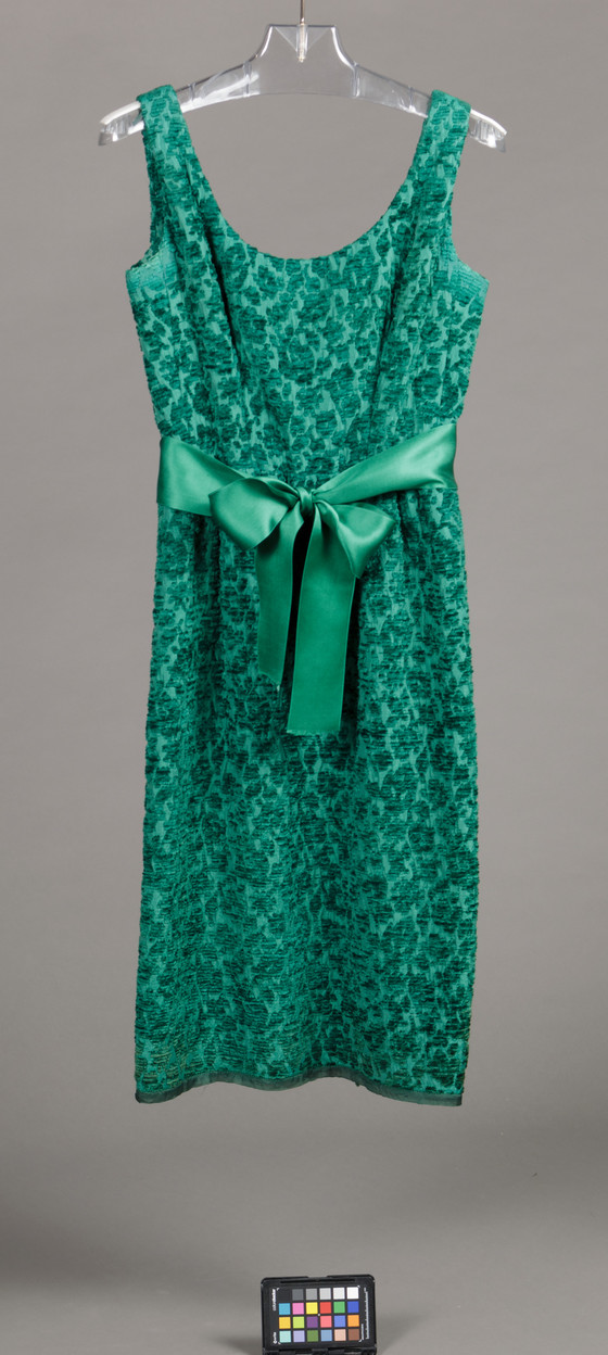 Dress: silk plain weave with supplementary silk chenille weft patterning