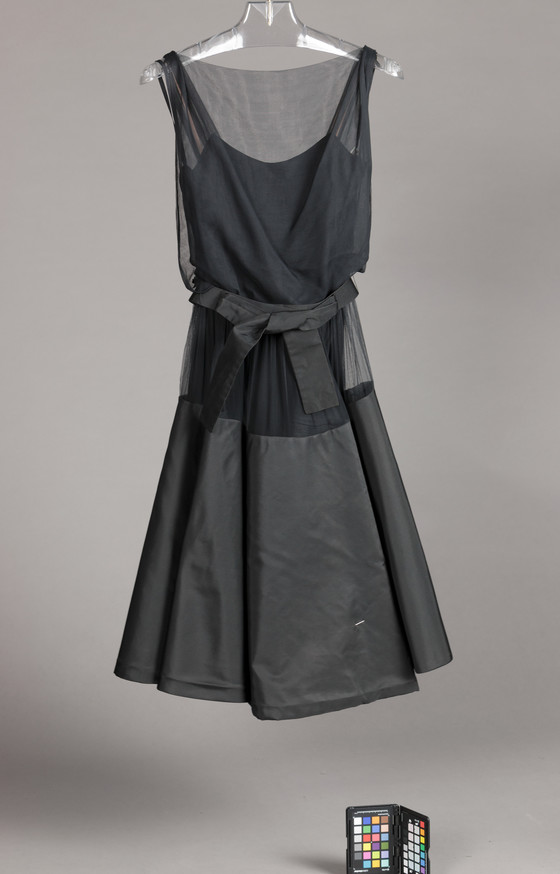 a) Dress: silk gauze, silk plain weave (taffeta). b) Belt: silk plain weave (taffeta)