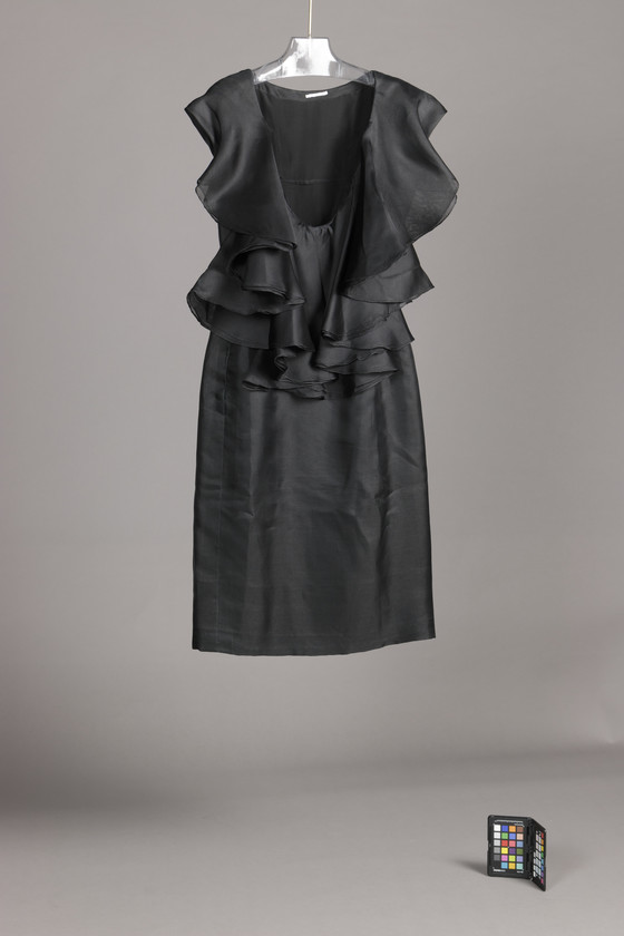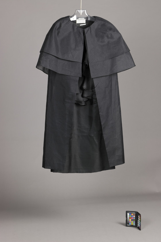Dress: Silk twill, silk plain weave (organza); Coat: