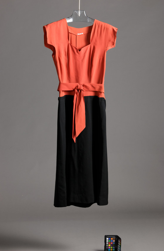 Jacket: Silk plain weave (crepe) and wool twill with silk thread covered buttons