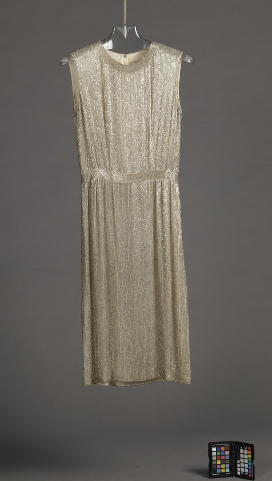 Dress: Silk plain weave (chiffon) and glass beads
