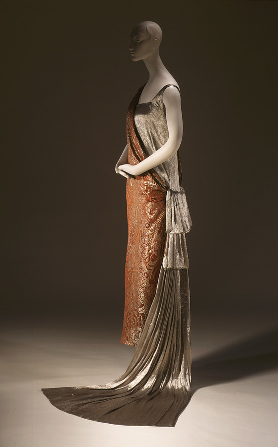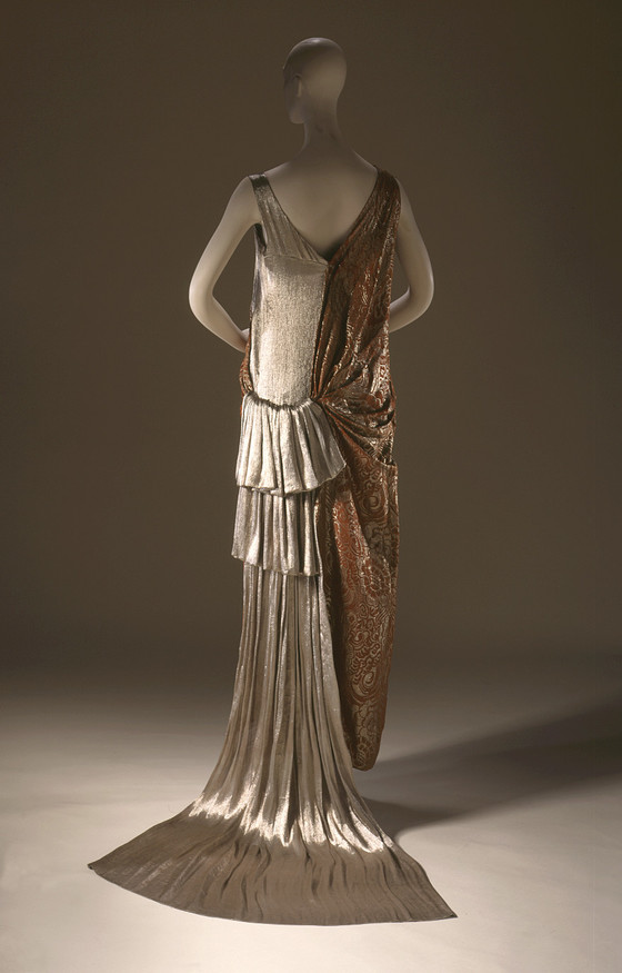 Silk damask with metallic-thread supplementary weft patterning and metallic-thread and silk satin (lamé)