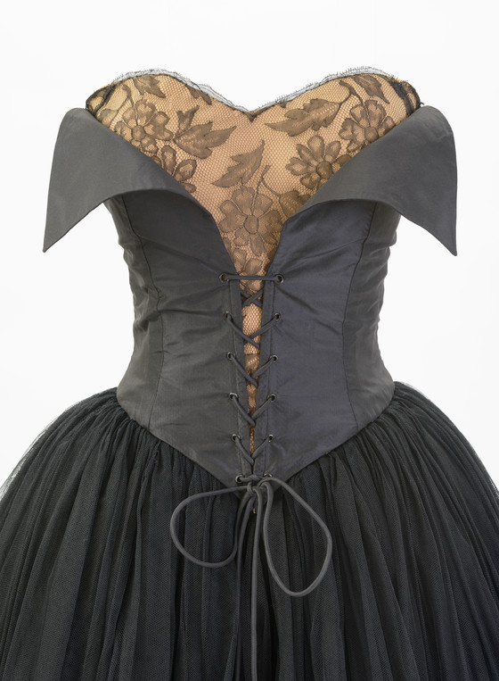 Silk tulle, rayon plain weave (taffeta), machine made lace, rayon plain weave (faille).