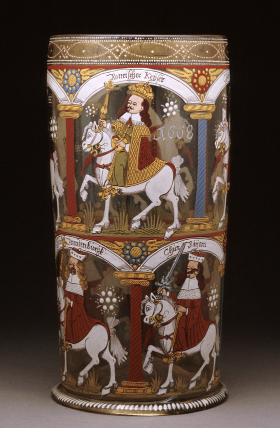 Height: 8 3/4 in. (22.23 cm); Diameter of rim: 4 1/4 in. (10.8 cm); Diameter of base: 6 5/16 in. (16.04 cm)