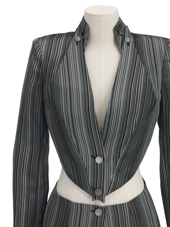Cotton/rayon/silk twill weave with engraved mother-of-pearl buttons
