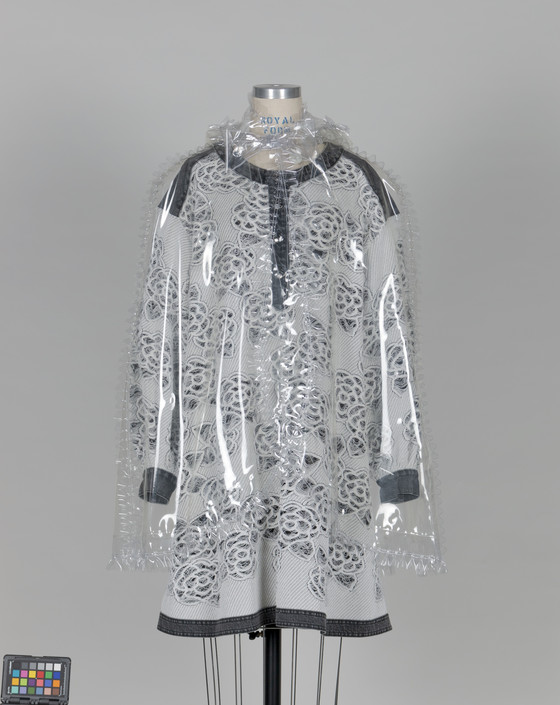 Woman's Rain Ensemble (Cape with Hood, Dress, Boots, Bag, and Umbrella)