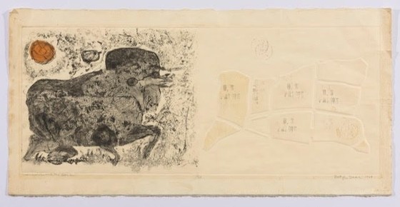 Intaglio, mixed media, orange stencil, embossing and hand stamp