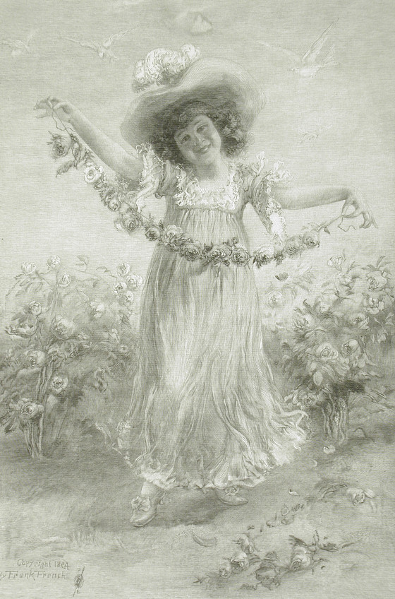 Descriptive: Young girl with flower garland