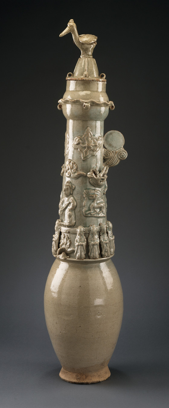 Qingbai ware, wheel-thrown stoneware with molded and applied decoration and pale blue glaze