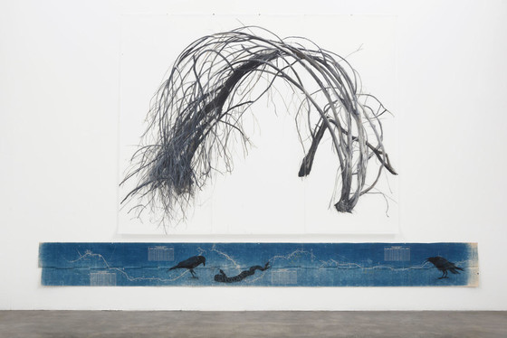Oil on drafting film, charcoal on railroad right of way schedule blueprint