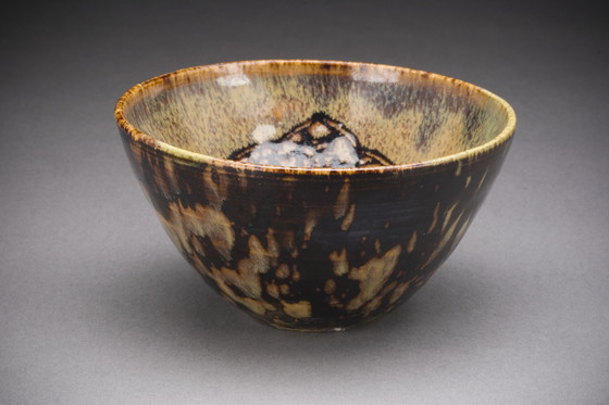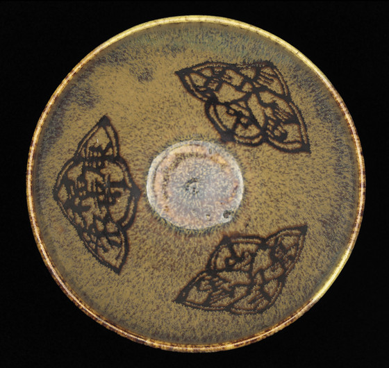 Jizhou ware; wheel-thrown stoneware with paper-cut resist decoration and mottled brown glaze