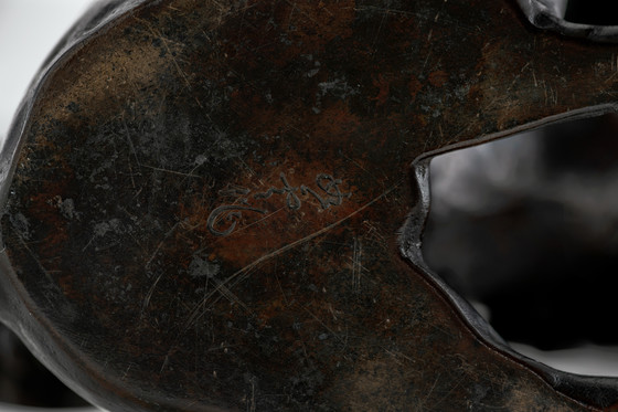 Cast and chased bronze with blue-black patina