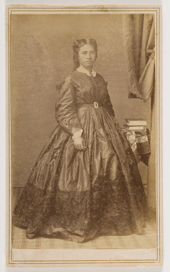 Also found in the Hawai'i State Archives online collection, captioned: "Liliuokalani in 1865, photographed by Charles L. Weed and later reproduced by Henry L. Chase. Cabinet card notes H.L Chase but the inscription on the back attributes to Charles L. Weed. Between March 1865 and November 1865" Call numberL PPWD-16-4-001.