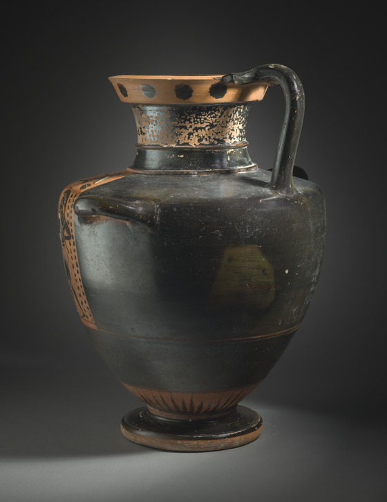Attic Black-Figure Hydria with (Body) a Departure Scene and (Shoulder) a Battle Scene