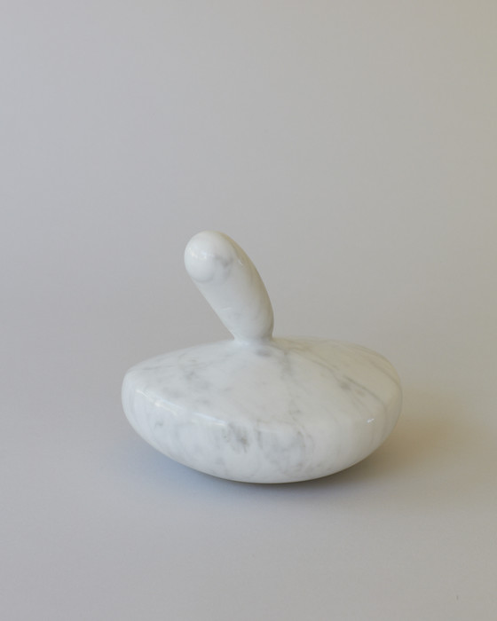 As a self-taught artist, Utah-born Alma Allen makes hand-carved sculptures that reflect an intuitive handling of material and are usually characterized by gentle, organic curves. After moving to New York City in 1993, Allen began carving small objects and selling them from an ironing board on the streets of Soho, attracting interest from established designers and collectors. After nearly a decade, he moved to Los Angeles and began designing furniture and tabletop objects, showcasing the ability to create fine art as well as functional and decorative works. Allen prefers to leave his pieces unnamed, attempting to distance himself from the works and focus on the materials used–often bronze, gold, marble, wood, and stone. Although he began his artistic career making small sculptures, he moved on to bigger pieces after 2006 when he developed a debilitating case of carpal tunnel syndrome, which prevented him from using his hand tools. He began using a giant robot that could translate his designs into three-dimensional objects, and allowed him to work at a much larger scale. In 2017, Allen moved to Tepoztlán, Mexico where he continues to create his enigmatic sculptures. This piece represents a transitional time in his career, and is a rare precursor to his later, larger-scale and better known work. This work, in contrast, is more intimate, yet exudes playfulness and charm. Although small, it conveys integrity, evidenced by its weight and the quality of the materials and carving. It is one of ten small Alma Allen sculptures donated to LACMA in 2022. Alexa Ramirez, Mellon Undergraduate Curatorial Fellow, Decorative Arts and Design, 2022