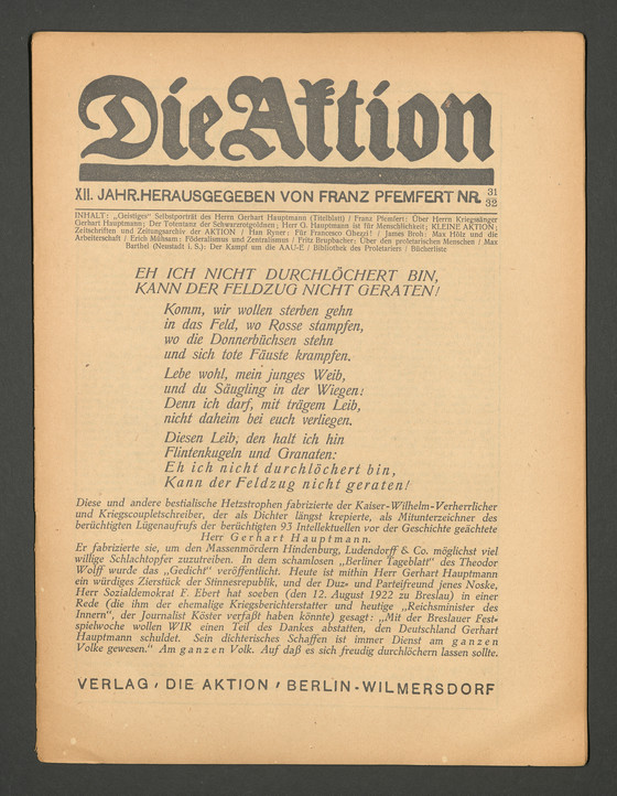 Die Aktion Jg. 12, Nr. 31/32 (15 August 1922)