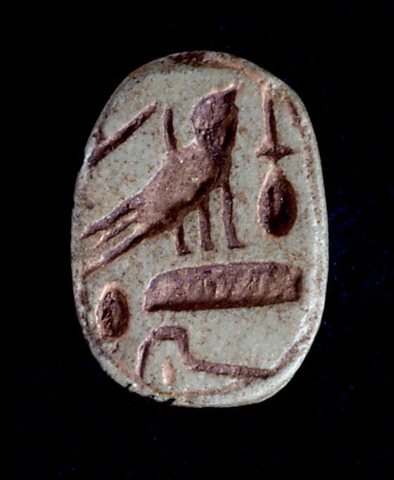 Faience Scarab Depicting the King as a Falcon