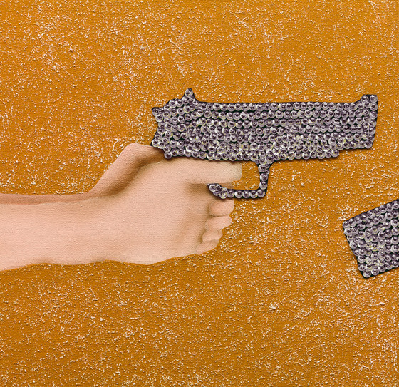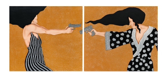Mixed media, acrylic and embroidery with sequins and beads on canvas