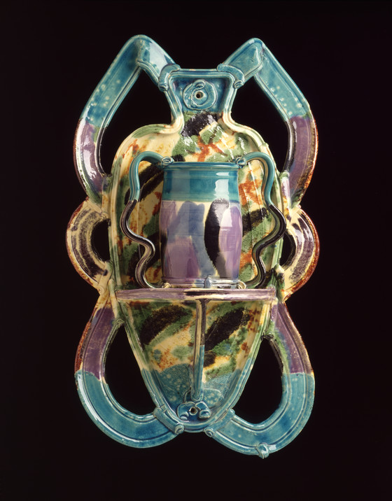 .1) Wall Piece: 29 x 17 3/4 x 6 1/2 in. (73.66 x 45.08 x 16.51 cm); .2) Cup: 9 3/4 x 9 3/4 x 4 3/4 in. (24.76 x 24.76 x 12.06 cm); Overall: 17 1/2 x 10 x 5 in. (44.45 x 25.4 x 12.7 cm)