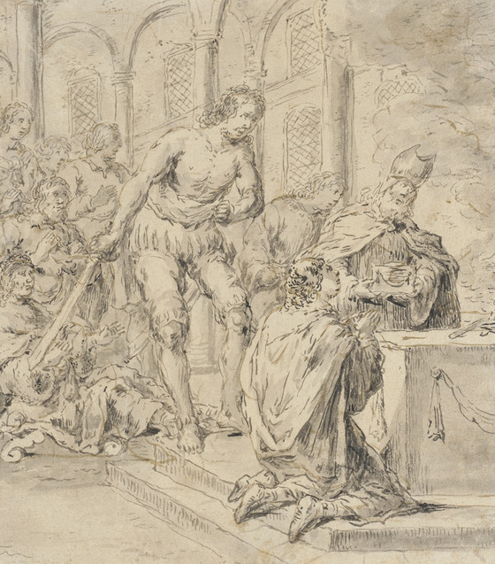 Black ink and wash, retouched with brown ink