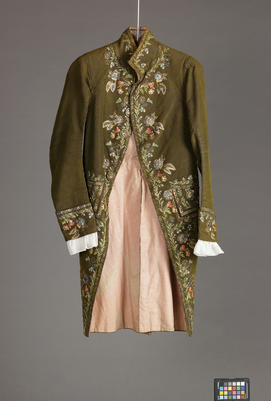 Silk uncut and voided velvet (ciselé), with silk and metallic-thread embroidery, metal sequins, and paste stones (crystals)