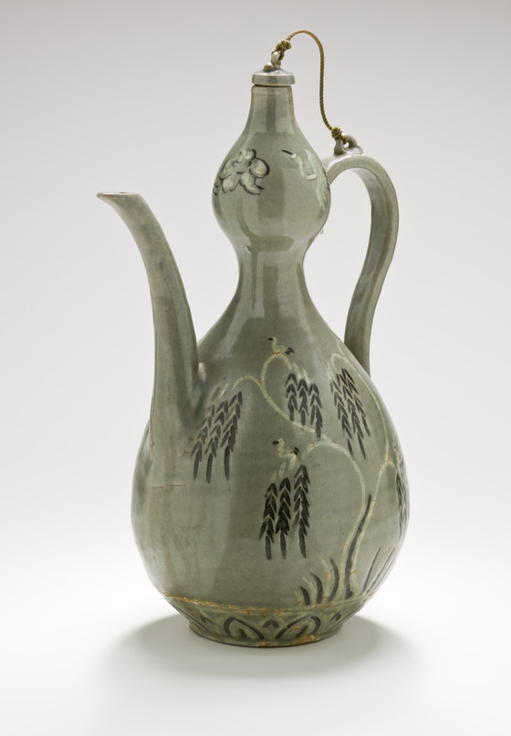 Gourd - shaped Ewer with Inlaid Willow and Bird Design