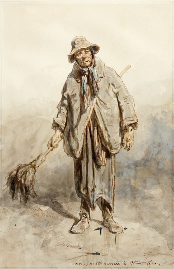 Red chalk, watercolor, heightened with white